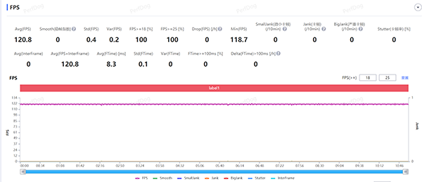 最高畫質(zhì)、120幀,全程波動極小,平均幀率為120.8,可喜可賀,應(yīng)對這類游戲,8+的調(diào)??磥聿挥脫?dān)心。