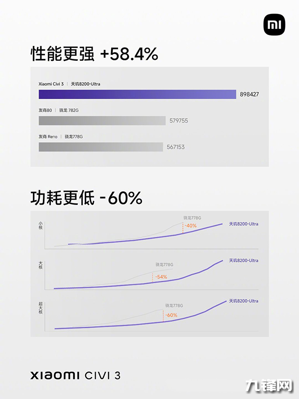 這次的小米civi3全球首發(fā)天璣8200-Ultra,能效大幅躍升;電競(jìng)級(jí)豪華散熱系統(tǒng),重載手游依然穩(wěn)定輸出;小米影像大腦首次實(shí)現(xiàn)芯片級(jí)強(qiáng)化,旗艦級(jí)影像體驗(yàn)。