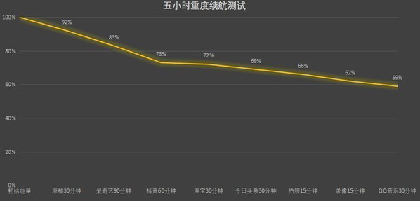 經(jīng)過(guò)了5小時(shí)重度續(xù)航測(cè)試后,榮耀X50還剩59%的電量。整體來(lái)看,榮耀X50的續(xù)航表現(xiàn)不僅與前代產(chǎn)品相比提升顯著,與同級(jí)競(jìng)品相比也建立了強(qiáng)大的優(yōu)勢(shì),較強(qiáng)的續(xù)航能力完全能夠滿足大家一天的手機(jī)使用需求。