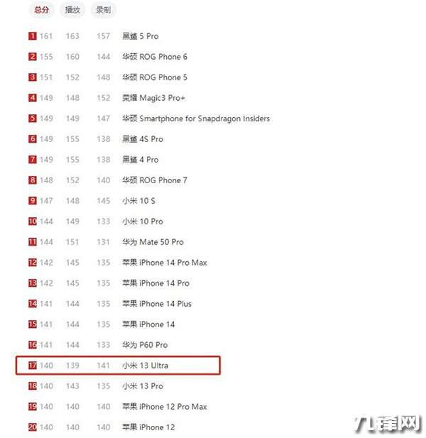 根據(jù)DXOMARK公布的測試結果,小米13 Ultra在音頻方面獲得了總分140分,在DXOMARK全球音頻排行榜中排名第17位。下面是它在各項測試中的得分: