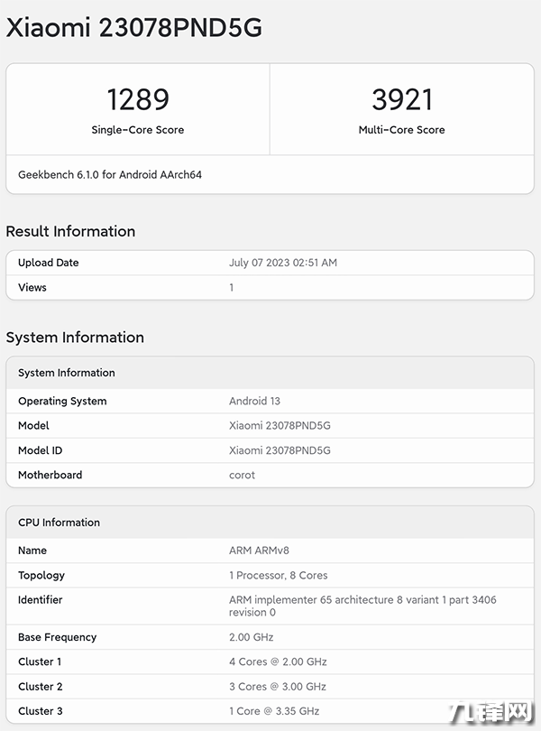 而Redmi K60 Ultra的在Geekbench 6.1.0上的跑分出爐了,單核跑分為1289分,多核跑分為3921分。