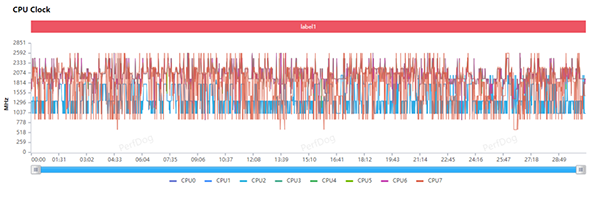 翻開紅魔8S Pro+調(diào)度策略,發(fā)現(xiàn)它與紅魔8 Pro有些許不同,最大區(qū)別在于這一次超大核的調(diào)度明顯積極很多,平均頻率從當(dāng)時(shí)的621MHz提升到1.8Ghz左右,利用率也從21.18%提高到64.77%。