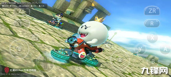 第一個測試的Switch游戲是《馬里奧賽車8》,打開“畫質(zhì)增強(qiáng)”,手機(jī)端開啟“覺醒模式”。
