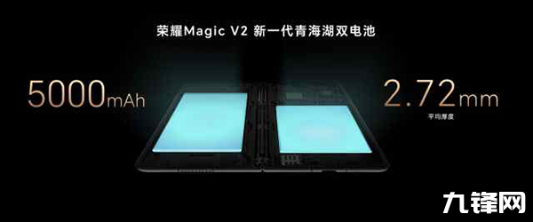 追求機身輕薄的同時,榮耀Magic V2系列采用新一代青海湖雙電池,其平均厚度僅為2.72mm,在輕薄折疊旗艦的機身空間內(nèi),實現(xiàn)了高達5000mAh的大容量。