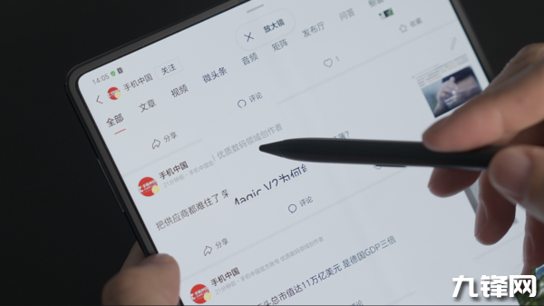再比如放大鏡,榮耀Magic V2手寫筆支持圈選屏幕任意區(qū)域進行放大,幫我我們在一些場景更好地了解內(nèi)容,看圖或者是看文章都有很大的幫助。