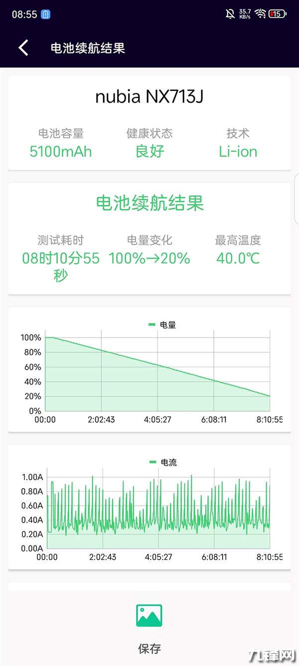 測至剩余電量20%,電池狗狗給出了8小時10分鐘的續(xù)航成績,折算下來,Z50S Pro的滿電續(xù)航時間大約可以達到接近10個小時,這是我們測試過效果可以位居第2檔的產(chǎn)品了,滿足日常使用絕對沒問題。