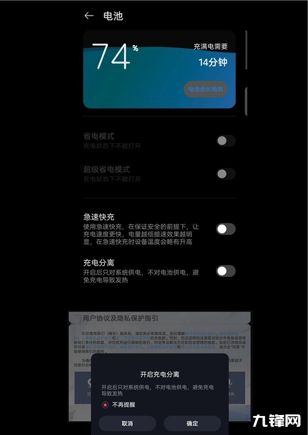 答案:支持,旁路充電在這個手機里也叫充電分離。