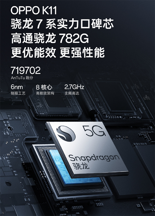 近期的這個OPPO K11手機在不斷的預(yù)熱,除了大家知道的主打影像拍攝之外,在性能配置上也是相當(dāng)耀眼,從官方曝光出來的參數(shù)可以確定,這個手機將搭載中端級別的驍龍782G,該處理器也是一款老將了,在多款中端手機上都有著強勁的性能表現(xiàn),這次的K11搭載這個處理順,也是讓這款手機成為同級性能最強者。