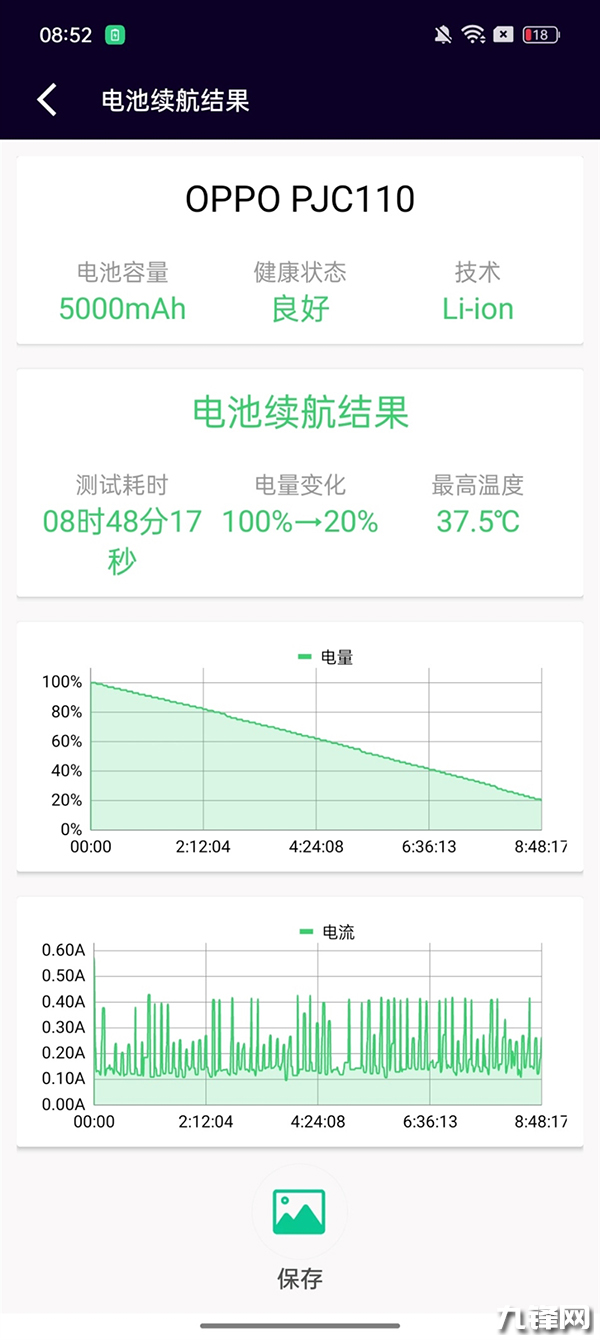 測至剩余電量20%,電池狗狗給出了8小時48分鐘的續(xù)航成績,折算下來,K11的滿電續(xù)航時間大約可以達(dá)到接近11個小時,滿足日常使用絕對沒問題。