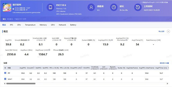 在日常使用中很難看出性能方面的差別,為了對性能進(jìn)行實際測試,筆者進(jìn)行了《王者榮耀》、《蛋仔派對》兩款主流游戲的使用體驗測試,并借助PerfDog全程記錄了幀率數(shù)據(jù)。