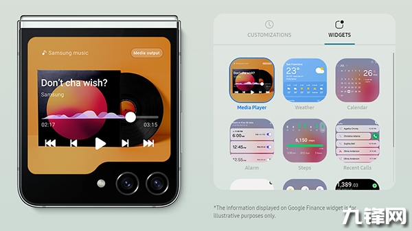 在這個(gè)外觀設(shè)計(jì)方面,Z Flip5采用文件夾形狀的不規(guī)則外屏,尺寸更大,達(dá)到3.4英寸,支持60Hz刷新率,同時(shí)加入AI自動(dòng)識(shí)別取景框人物來切換不同攝像頭拍照,防抖功能也進(jìn)一步增強(qiáng),外屏與保護(hù)殼個(gè)性化程度更高;內(nèi)部配備一塊6.7英寸FHD+(2640 x 1080)Dynamic AMOLED 2X中置打孔折疊屏,支持120Hz高刷。