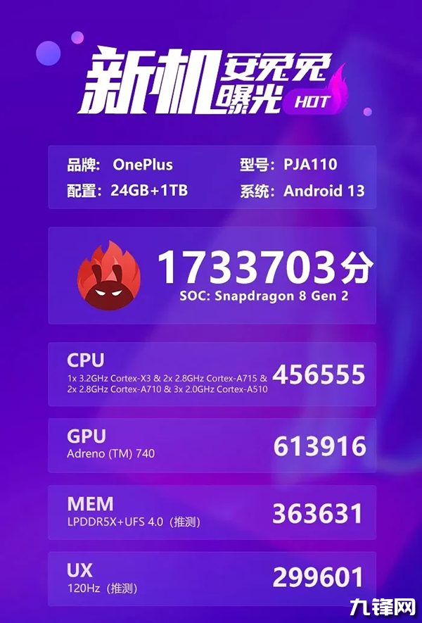 目前一加Ace2 Pro安兔兔跑分曝光,搭載3.2GHz版驍龍8Gen2,24GB RAM,1TB ROM,安兔兔V10跑分1733703分,比之前的紅魔8S Pro上的171萬分還要高出不少,可以一加的調(diào)教功力也是相當(dāng)深厚啊,要知道這個(gè)處理器還是3.2GHz版的,并不是超頻版的3.36GHz。