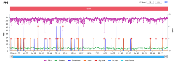 30分鐘連續(xù)測試后,Z Fold5平均幀數(shù)為57.7幀,渲染分辨率1284 x 1069,游戲幀數(shù)出現(xiàn)一點波動,總體比較平穩(wěn),較上代進(jìn)步非常明顯,是現(xiàn)在旗艦手機(jī)運行《原神》的主流水準(zhǔn)。