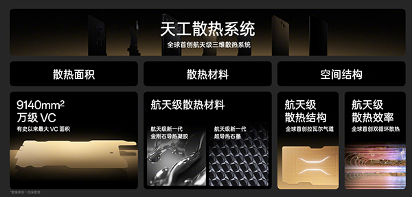 另外,在這個(gè)散熱方面,一加Ace2 Pro首發(fā)航天級散熱材料,首創(chuàng)航天級散熱空間結(jié)構(gòu),天工散熱VC性能大幅度領(lǐng)先,甚至做到了溫度要比友商更低14度。