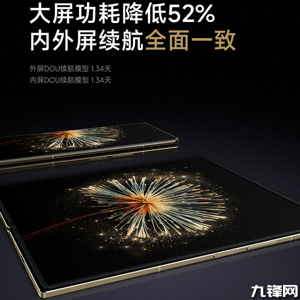 因為其采用了Pol-less Plus低功耗顯示技術,輔以三星E6發(fā)光材料、LTPO動態(tài)刷新率、分區(qū)獨立刷新以及全新的屏幕IC工藝優(yōu)化等諸多技術,最終這塊8.03英寸的內(nèi)屏DOU續(xù)航模型達到了1.34天,要知道外屏DOU續(xù)航模型也是1.34天,這真的有點不可思議。