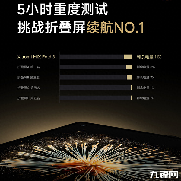 在和競品的對比中,通過行業(yè)通行的5小時重度續(xù)航測試,可以看到小米MIX Fold3最終剩余11%的電量,明顯領先于另外幾款產(chǎn)品,拿下了折疊屏5小時重度測試續(xù)航NO.1的成績,這個成績也超過了很多常規(guī)手機,小米MIX Fold3當作主力機更沒有問題了。