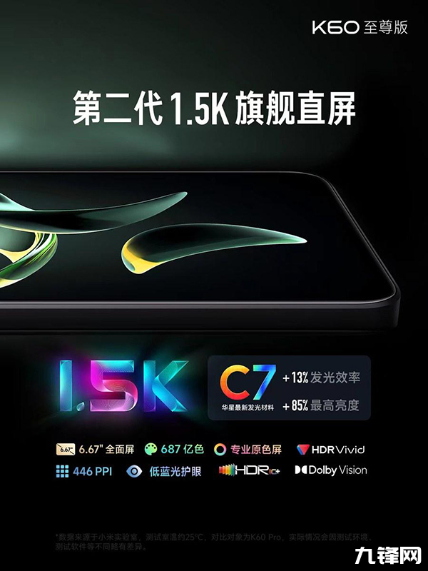 屏幕:尺寸是6.67英寸,分辨率是2712×1220,OLED材質(zhì)的直屏,屏幕供應商是華是光電,TCL華星C7發(fā)光材料,全局默認最高亮度500nit、全局激發(fā)亮度1200nit、局部激發(fā)亮度2600nit,支持144Hz刷新率,480Hz觸控采樣率,支持2880Hz高頻PWM調(diào)光,支持12bit色深,通過杜比視界、杜比全景聲、HDRVivid、HDR10+、幀享超高清認證;