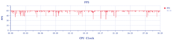 在這個《原神》游戲中,測試環(huán)境為24℃左右的空調(diào)房,游戲設(shè)置為高畫質(zhì)、60FPS幀率,須彌城跑圖30分鐘。在測試過程中一加Ace2 Pro基本穩(wěn)定在60FPS上下,整個測試過程中平均幀率為59FPS。