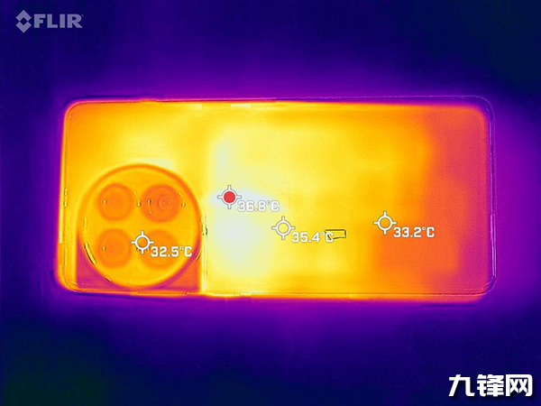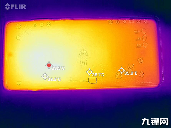 在測試結(jié)束之時,我們還使用了FLIRONEPRO測量了一加Ace2 Pro表面溫度,背面最高溫度出現(xiàn)在攝像頭下方,為39.5℃,正面最高溫度出現(xiàn)手機(jī)上方(靠近前置攝像頭的位置),為36.8℃。綜合《原神》幀率表現(xiàn),一加Ace2 Pro能很好平衡性能與散熱表現(xiàn)。