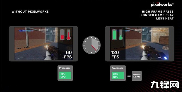 在此之前,iQOO Neo5、iQOO Neo5S等機型曾經(jīng)使用過Pixelworks推出的X5 Pro獨顯芯片,其主要可以實現(xiàn)硬件MEMC運動計算和補償技術(shù),它可以計算出兩幀畫面之間的過渡幀并插入。舉個例子,用戶在《和平精英》內(nèi)可以開啟90FPS游戲插幀,此時手機GPU就只負責45FPS的渲染,其他45FPS由獨顯芯片計算出來,一定程度上還能降低SoC負載,降低功耗等等。