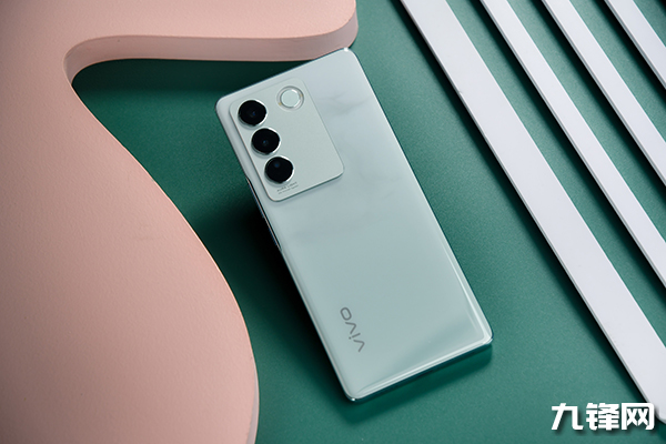 這次的vivo S16的影像模組,沿用了此前S系列的矩形設(shè)計(jì)。在影像模組的左側(cè),為三顆攝像頭開孔,右側(cè)則是后置原彩柔光環(huán)。大小統(tǒng)一的圓環(huán)秩序整齊,搭配右側(cè)柔光環(huán)下的大面積留白設(shè)計(jì),高級感一下子就上來了。