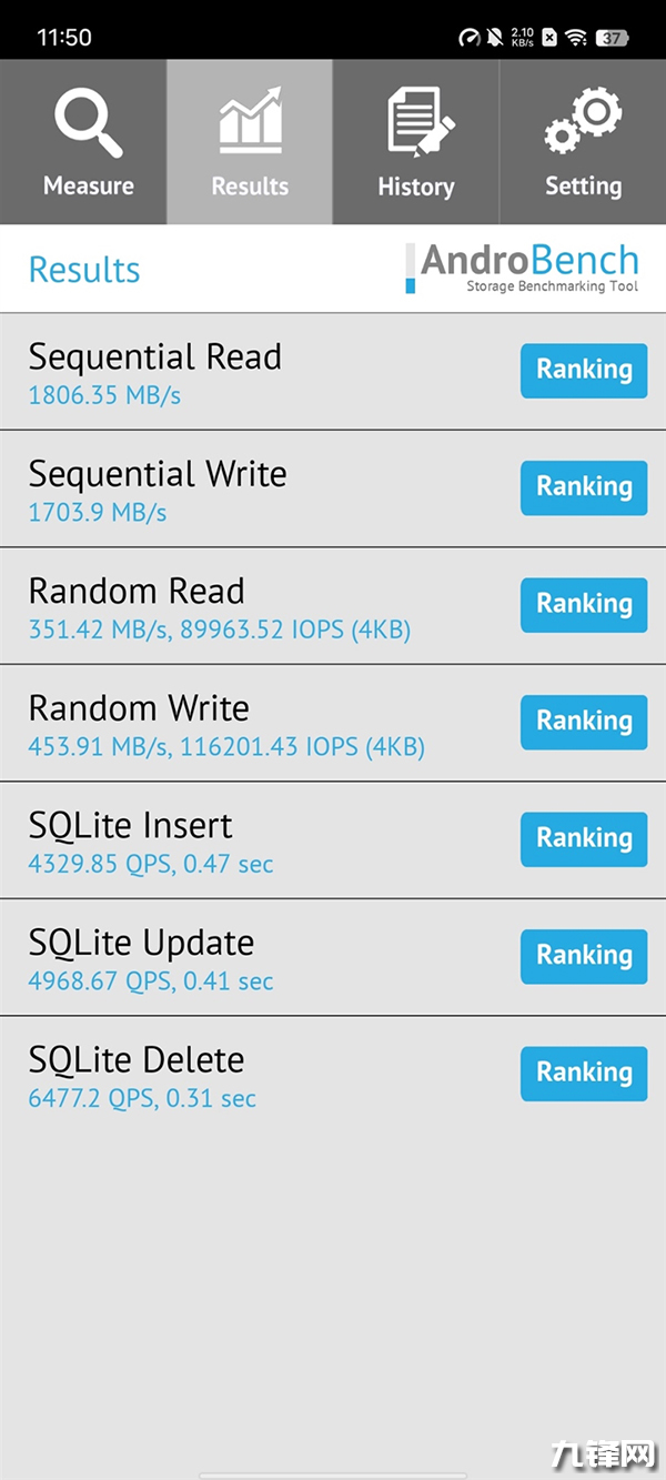 vivo S16 Pro采用UFS 3.1規(guī)格閃存,經(jīng)過Androbench的測試,順序讀取成績達到1806.35MB/s,順序寫入速度達到1703.9MB/s。