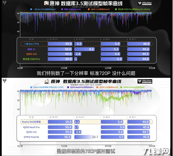 而Redmi K60至尊版平均幀率高達(dá)120.2 FPS,功耗3.4 W,機(jī)身最高39 ℃;