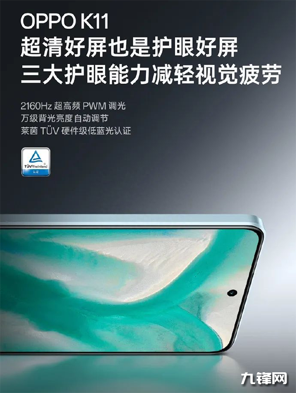并且OPPO K11屏幕支持2160Hz超高頻PWM調(diào)光,能減輕低亮度場(chǎng)景下的屏幕閃爍,暗光環(huán)境下使用手機(jī)更加舒適。