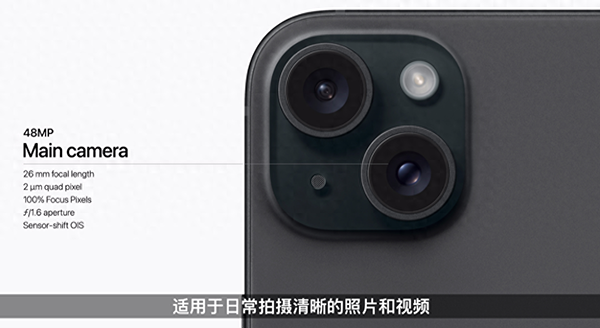 在攝像頭方面,這次的iPhone15和15 Plus搭載了4800萬像素的主攝,配備四合一像素傳感器以及100% FocusPixels功能可實(shí)現(xiàn)快速自動(dòng)對(duì)焦,1200萬像素超廣角攝像頭,通過軟硬件智能集成實(shí)現(xiàn)全新2倍長(zhǎng)焦功能,可提供三種光學(xué)品質(zhì)變焦包括0.5倍、1倍、2倍。