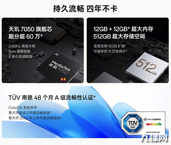 在這個(gè)軟件方面,有全新的ColorOS超算平臺(tái)加持,4大計(jì)算引擎調(diào)優(yōu),提升系統(tǒng)流暢性和穩(wěn)定性,還能提高后臺(tái)駐留應(yīng)用數(shù)量,提高應(yīng)用啟動(dòng)速度。從而獲得了TüV南德48個(gè)月A級(jí)流暢認(rèn)證,用四年也不用害怕手機(jī)卡頓。