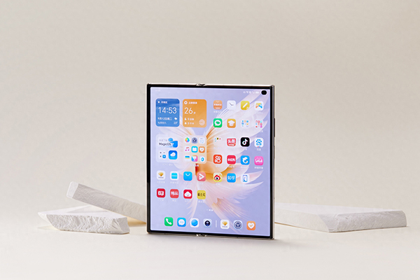 與直板機相比,折疊后盡管手感一致,榮耀V Purse展開后又是一款平板,7.71英寸2K分辨率大屏,配合立體聲雙揚聲器,追劇看電影不要太爽,超清震撼的影音體驗是直板機永遠也無法企及的大視界體驗。