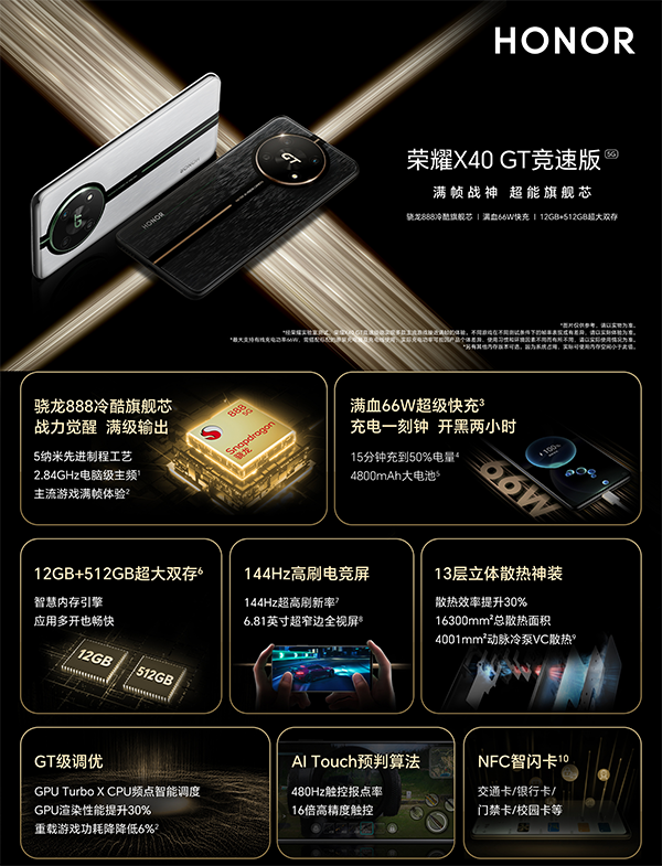 榮耀X40 GT競速版參數(shù)配置: