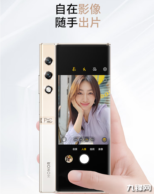 在這個拍照方面,榮耀V Purse搭載5000萬像素超感光大底主攝、1200萬像素超廣角微距鏡頭,硬件實力在線。榮耀V Purse詮釋全新影像自我表達,帶來超自由寫真相機,支持雙屏預覽,被拍攝者也能觀察到自己的表情和位置,方便隨時做出調整,拍到更好的一面。