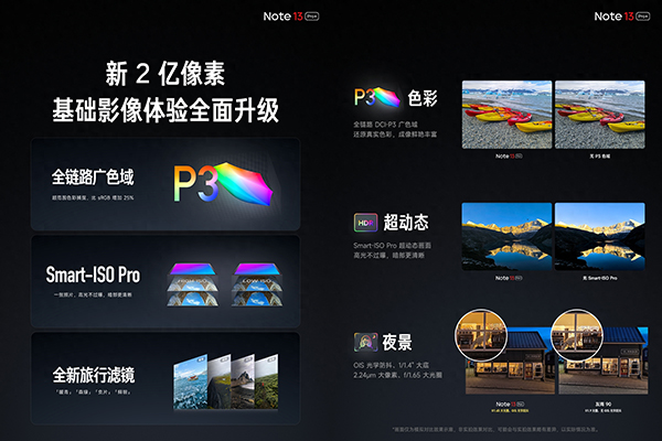 從這個參數(shù)配置上可以看出,Note13 Pro+主要搭載與三星ISOCELL聯(lián)合定制的2億像素大底相機HP3探索版主攝,外加800萬像素的超廣角鏡頭以及200萬像素的微距鏡頭。從基本的參數(shù)來看,Note13 Pro+主要依靠主攝高達2億像素的強大解析力,配合OIS光學(xué)防抖,來大幅提升成片數(shù)量與質(zhì)量。