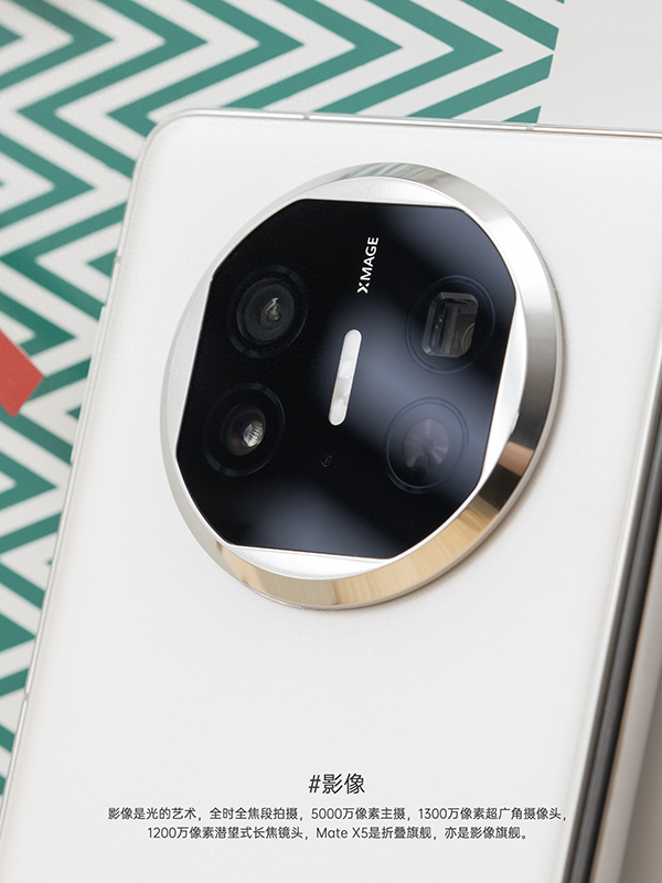 影像是華為Mate X5的一個核心亮點,手機鏡頭模組依舊具備很高的辨識度,三顆鏡頭分別是5000萬像素主攝,1300萬像素超廣角攝像頭,1200萬像素5倍光學(xué)變焦?jié)撏介L焦鏡頭,支持50倍數(shù)字變焦與微距攝影,同時實現(xiàn)全時全焦段拍攝。