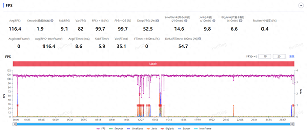 在榮耀X40 GT競(jìng)速版手機(jī)的游戲測(cè)試中,《和平精英》的平均幀率達(dá)到89.6幀,《王者榮耀》平均幀率達(dá)到了116幀,從測(cè)試截圖可以看到,在游戲過(guò)程中游戲幀率表現(xiàn)十分的平穩(wěn),除了中間加載的時(shí)間段,其余時(shí)間基本都能維持了滿幀運(yùn)行,可以說(shuō)游戲體驗(yàn)非常的出色。
