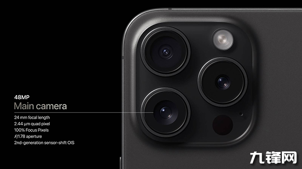 在這個(gè)拍照方面,此次的iPhone 15 Pro依然搭載了三顆攝像頭,包括廣角、超廣角和長(zhǎng)焦。其中4800萬(wàn)像素主攝默認(rèn)設(shè)置為2400萬(wàn)像素模式,即以二合一形式輸出,支持第二代傳感器位移式光學(xué)防抖,另外還支持用戶在三種主流的焦段(24mm、28mm和 35mm)中自由切換,甚至選擇其中一個(gè)焦段作為默認(rèn)焦段。