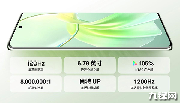 這次Y100搭載了一塊6.78英寸3DOLED曲面屏,在顯示規(guī)格上,擁有2400×1080分辨率,支持120Hz自適應(yīng)變速高刷、1300nit局部激發(fā)亮度、8,000,000:1對(duì)比度、100%P3電影級(jí)色域、105%NTSC廣色域,以及通過(guò)了SGS低藍(lán)光認(rèn)證、SGS低拖影認(rèn)證、SGS低頻閃認(rèn)證。