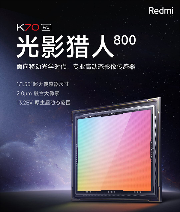 光影獵人800,這次的紅米K70 Pro采用的定制5000萬(wàn)像素光影獵人800主攝,傳感器尺寸1/1.55英寸,支持OIS光學(xué)防抖。