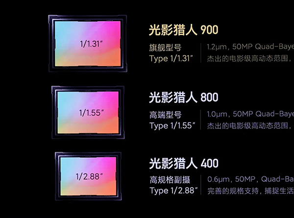 小米的光影獵人800,光影獵人400,一個5000萬像素 1μm 1/1.55英寸,一個5000萬像素 0.6μm 1/2.88英寸,后面肯定會有超高端的光影獵人1000,讓我們一起期待吧。