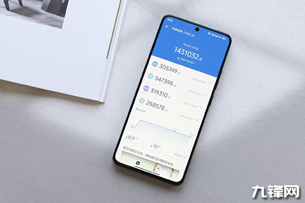 我們也使用跑分軟件對它的理論性能進(jìn)行了測試,可以看到,它在安兔兔之中可以跑出143萬的分?jǐn)?shù),只比第二代驍龍8的性能要稍微遜色一些,但也算得上是很接近了。