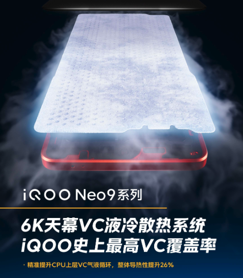 6043mm2,iQOO Neo9 Pro在散熱方面配置的是6043mm2VC均熱版。