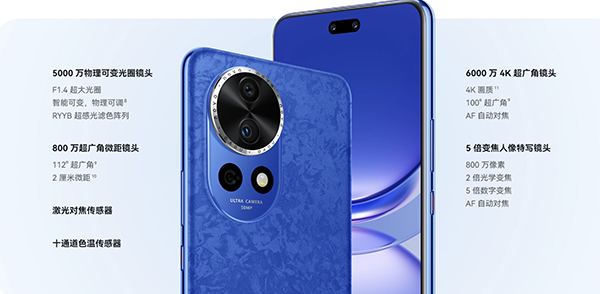 后置5000萬像素主攝(豪威OV50E傳感器,1/1.55英寸,f/1.4~f/4.0物理可變光圈)
