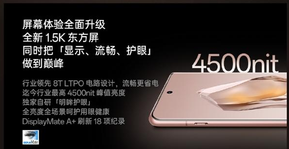 這塊屏幕是京東方定制頂級國產(chǎn)屏,分辨率為2780*1264,支持4500nit峰值亮度,是目前手機行業(yè)最高亮度水平。