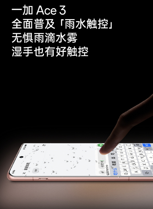 支持,一加Ace3搭載同檔唯一搭載超薄屏幕指紋的手機(jī),解鎖更快、更舒適;同時(shí)支持備受用戶好評(píng)的雨水觸控,保障濕手狀態(tài)下的觸控體驗(yàn)。