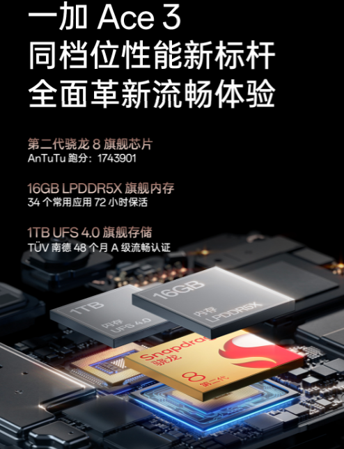 作為一款性能機(jī),一加Ace3搭載驍龍8Gen2處理器,還有LPDDR5X+UFS4.0組成的性能鐵三角,再配合ColorOS 14系統(tǒng)優(yōu)化,流暢體驗(yàn)達(dá)到新高度,還通過了TüV南德48個(gè)月A級(jí)流暢認(rèn)證,用個(gè)四年都不用擔(dān)心手機(jī)會(huì)卡頓。