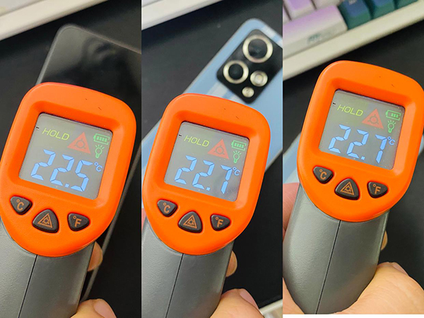 70分鐘王者游戲后,實(shí)測(cè)溫度為正面屏幕35.5℃,機(jī)身后蓋34.3℃,鏡頭模組33.7℃,提升在11-13℃之間,雖然看著溫度提升超10℃,但實(shí)際機(jī)身最高溫度(正面屏幕)也才35.5℃,談不上發(fā)燙嚴(yán)重,所以整體來說溫度控制得還是很不錯(cuò)。