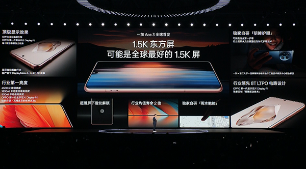 在正面,這次的一加Ace3正面搭載了6.78英寸的1.5K東方屏,為曲面柔性O(shè)LED,分辨率為2780×1264、450PPI,支持120Hz動態(tài)刷新、10.7億色顯示、100%DCI-P3廣色域、HDR10+、杜比視界,表面覆蓋有康寧大猩猩玻璃Victus2。