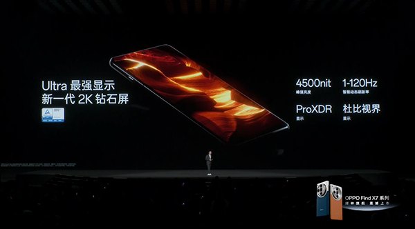 屏幕方面,OPPO Find X7 Ultra采用6.82英寸曲面屏,由京東方提供,分辨率是3168×1440,采用8T LTPO屏幕,低亮度支持2160Hz高頻PWM調(diào)光,高亮度支持3Pulse/1Pulse類DC調(diào)光。