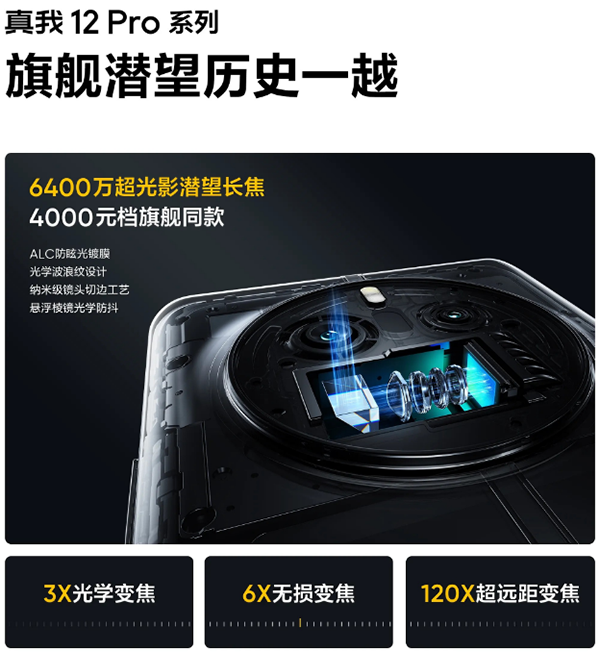 這次的真我12 Pro+獲得旗艦潛望的加持,并稱之為“歷史一越”。直接把旗艦才有的潛望式長(zhǎng)焦下放到中端機(jī)型中,真我確實(shí)是卯足了勁。